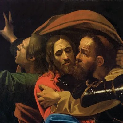 "the taking of christ" by caravaggio depicts the arrest of jesus just as judas kisses jesus to identify him for the soldiers. On indefinite loan to the national gallery of ireland from the jesuit community, leeson st., dublin who acknowledge the kind generosity of … It is considered as one the darkest and densest work produced by caravaggio. The figures are portrayed before a very dark background. They are john, jesus, judas, three soldiers, and a man holding a lantern to the scene.. "the taking of christ" by caravaggio depicts the arrest of jesus just as judas kisses jesus to identify him for the soldiers.